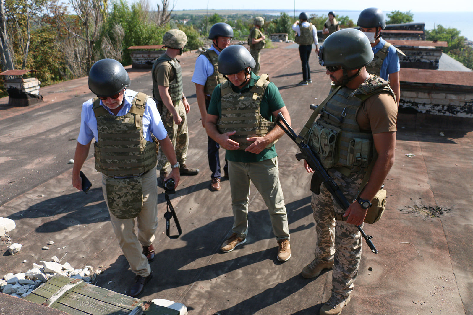 Также зарубежные гости посетили прифронтовой поселок Широкино, где осмотрели разрушенную боевиками инфраструктуру.