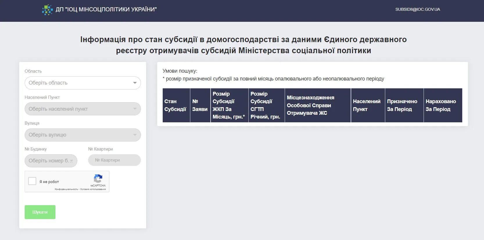 Украинцы могут самостоятельно с помощью онлайн-сервиса проверить, назначена ли им субсидия на оплату жилищно-коммунальных услуг. Для этого достаточно перейти в открытый Единый государственный реестр получателей жилищных субсидий за ссылкой. Поиск информации в реестре осуществляется по адресу домохозяйства.