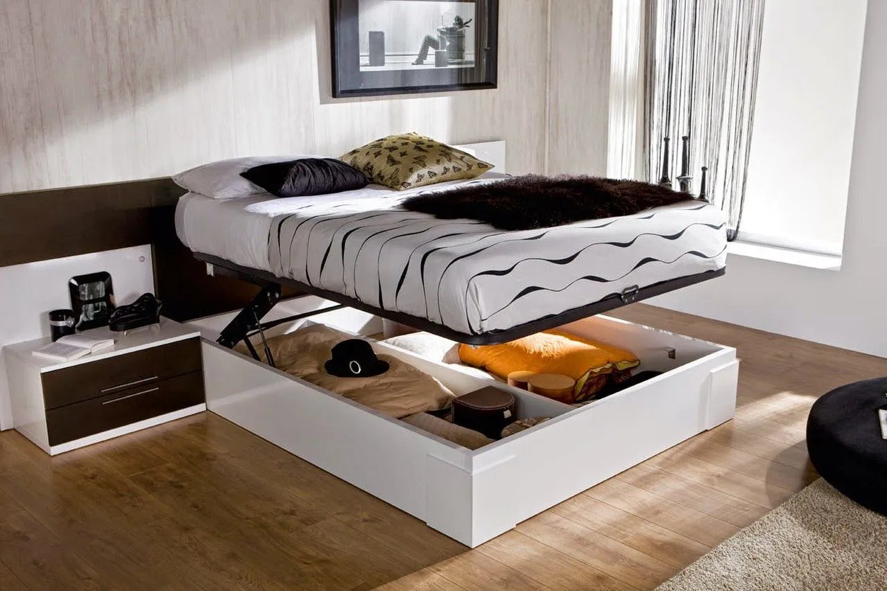 При выборе обстановки для спальни, особенно небольшого размера, приоритет отдается функциональной мебели. Поскольку кровать — основной предмет меблировки спальни, ее нужно также использовать по-максимуму.