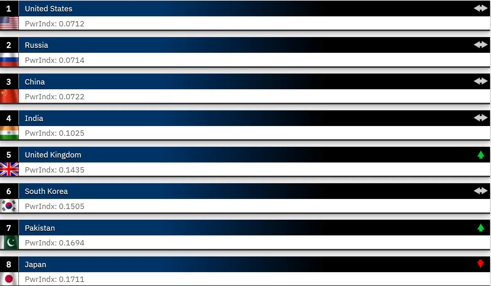 Примечание от авторов рейтинга: Поскольку Украина продолжает защиту от россии, она повысила свой индекс GFP за текущий год в результате своего ответа, финансовой и материальной поддержки Запада и введения новых ключевых категорий, способствующих ее общему положению в списке. 2023 окажется критическим в направлении кровавого российско-украинского конфликта.