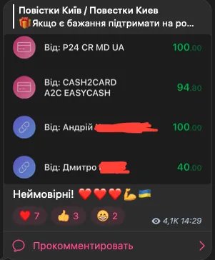 Один из самых популярных киевских Telegram-каналов, у которого почти 117 тысяч подписчиков и пишет о вручении повесток в городе, переживает трудные времена. Администраторы стали просить у людей донаты «на развитие и кофе».
