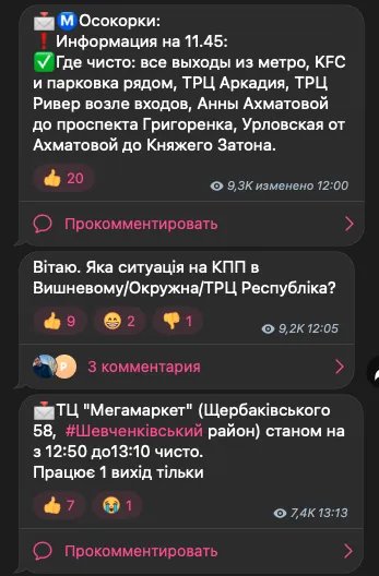 Неудивительно, ведь последние несколько дней в канале часто пишут одну и ту же фразу: «Все чисто». Похоже, что на улицах столицы больше не подстерегают терробороновцы и работники военкомата с «письмами счастья». Или же их стало значительно меньше. Писать не о чем.